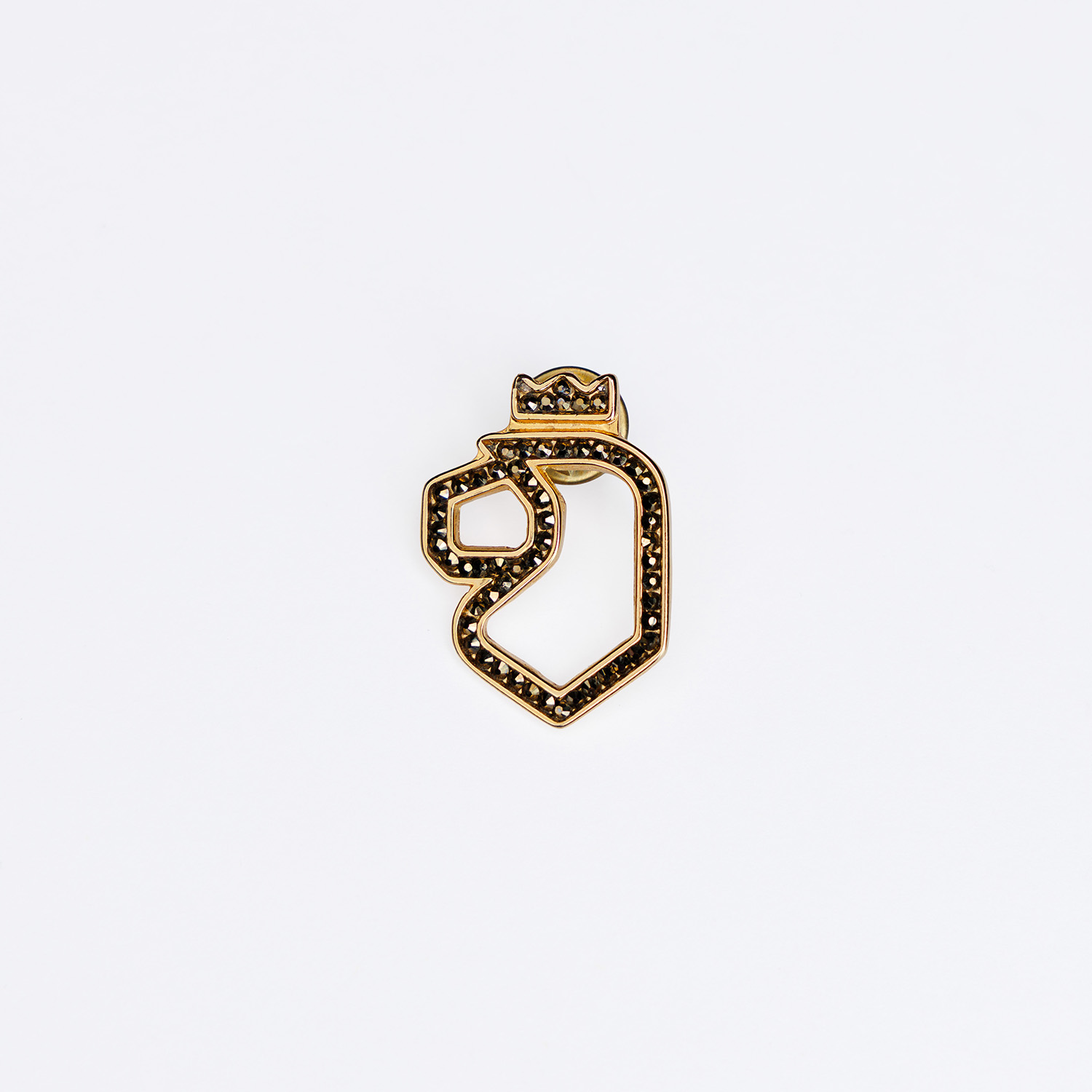 Pin en zamak, acabado baño de oro, decorado artesanalmente con cristales austriacos.